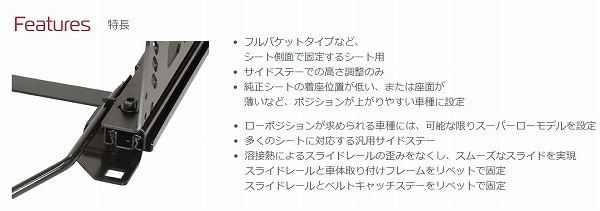 フルバケットタイプなど、シート側面で固定するシート用のレールです。