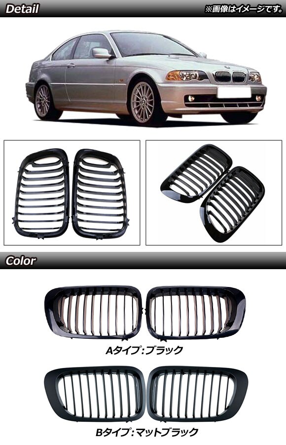 フロントグリルカバー BMW 3シリーズ E46 前期 2ドア車用 1998年~2002年 マットブラック Bタイプ ABS製 シングルバー 入数:1セット(2個) AP-FG308-B