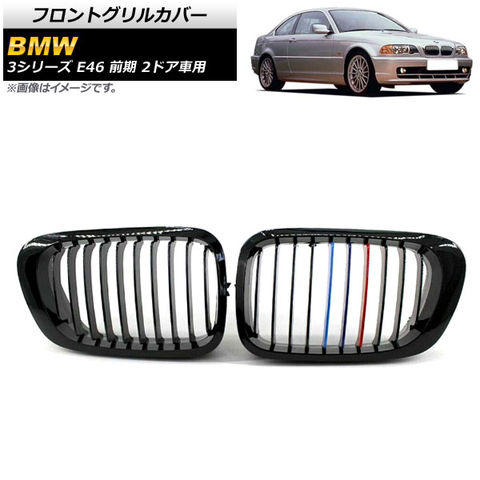 フロントグリルカバー BMW 3シリーズ E46 前期 2ドア車用 1998年~2002年 ブラック×Mカラー Cタイプ ABS製 シングルバー 入数:1セット(2個) AP-FG308-C