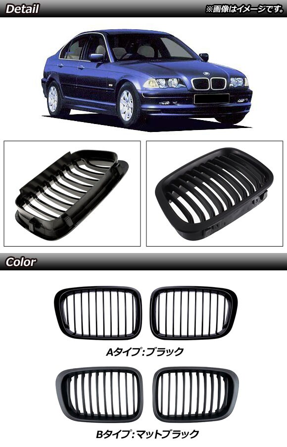 フロントグリルカバー BMW 3シリーズ E46 前期 4ドア車用 1998年~2002年 ブラック Aタイプ ABS製 シングルバー 入数:1セット(2個) AP-FG309-A