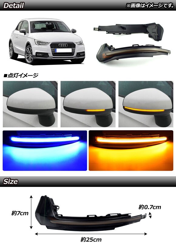 LED流れるドアミラーウインカーレンズ アウディ A1 8X 2011年~2017年 アンバー/ブルー スモークレンズ 入数:1セット(左右) AP-LL305
