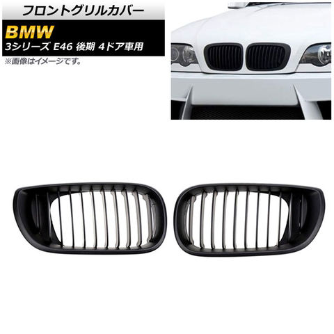 フロントグリルカバー BMW 3シリーズ E46 後期 4ドア車用 2002年~2005年 マットブラック Bタイプ ABS製 シングルバー 入数:1セット(2個) AP-FG312-B