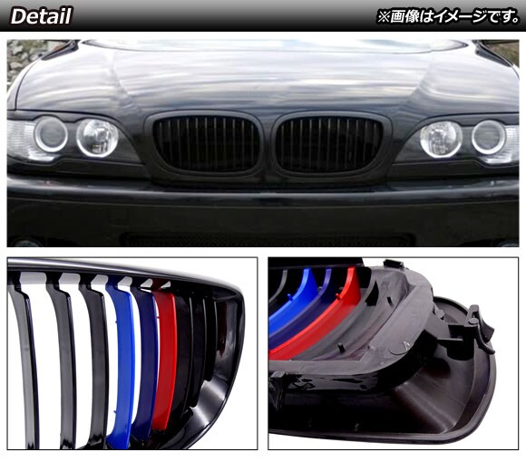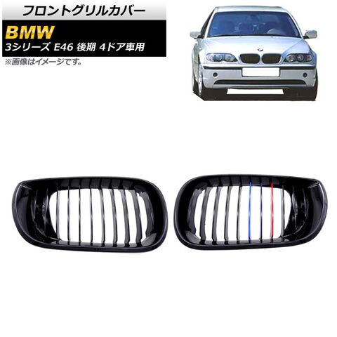 フロントグリルカバー BMW 3シリーズ E46 後期 4ドア車用 2002年~2005年 ブラック×Mカラー Cタイプ ABS製 シングルバー 入数:1セット(2個) AP-FG312-C