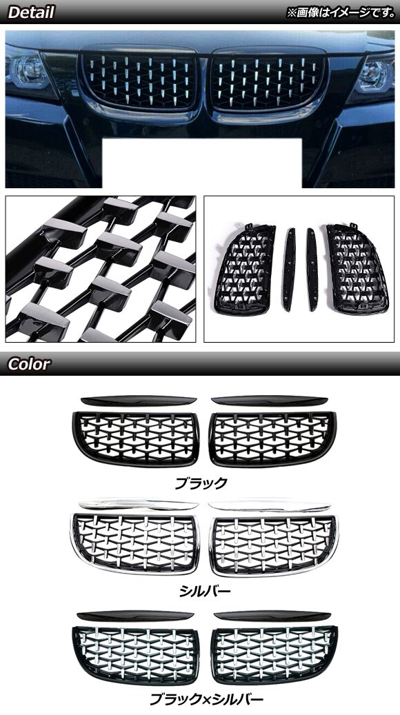 フロントグリルカバー BMW 3シリーズ E90/E91 2005年~2008年 ブラック ABS製 入数:1セット(4個) AP-FG313-BK