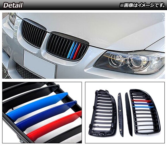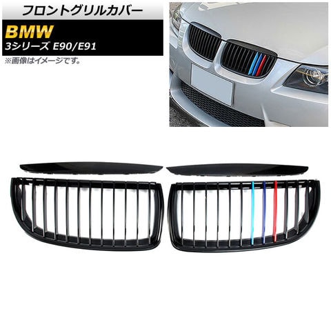 フロントグリルカバー BMW 3シリーズ E90/E91 2005年~2008年 ブラック×Mカラー Cタイプ ABS製 シングルバー 入数:1セット(4個) AP-FG315-C