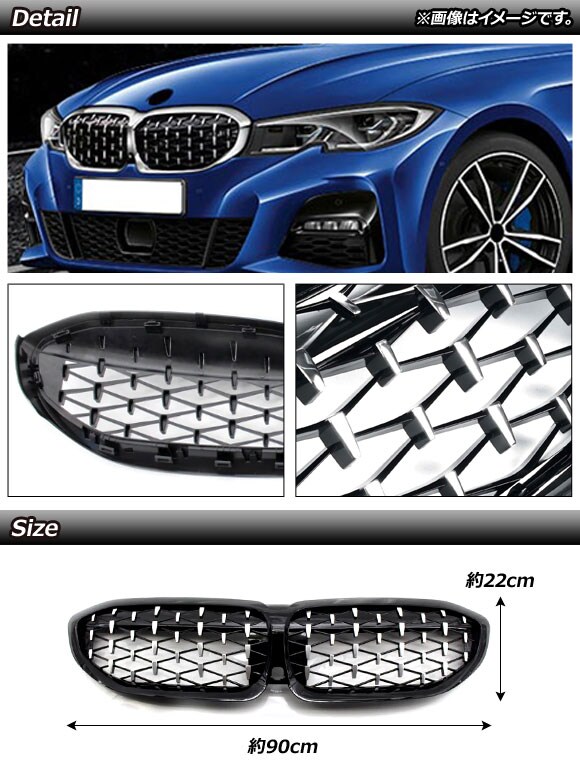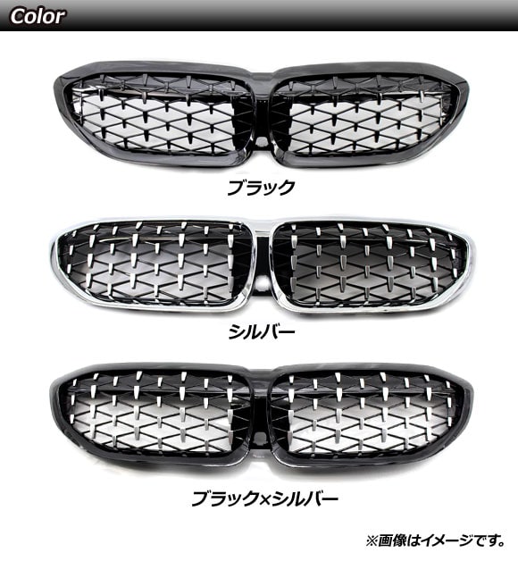 フロントグリルカバー BMW 3シリーズ G20/G28 カメラ装着車対応 2019年~ ブラック×シルバー ABS製 カメラホール付き 入数:1セット(2個) AP-FG290-BKSI