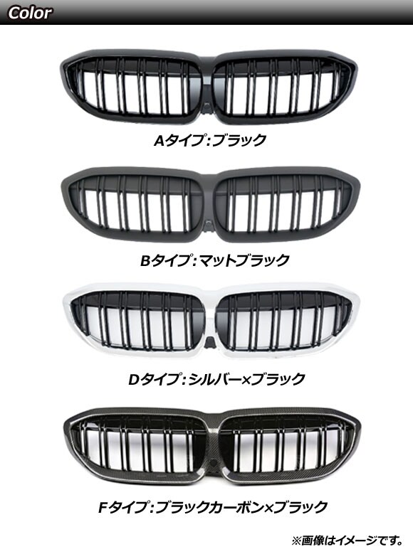 フロントグリルカバー BMW 3シリーズ G20/G28 2019年~ ブラックカーボン×ブラック Fタイプ ABS製 ダブルバー カメラホール付き AP-FG291-F