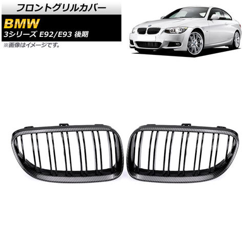 フロントグリルカバー BMW 3シリーズ E92/E93 2010年~2014年 ブラックカーボン×ブラック Cタイプ ABS製 ダブルバー 入数:1セット(2個) AP-FG320-C