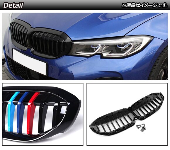 フロントグリルカバー BMW 3シリーズ G20/G28 カメラ装着車対応 2019年~ ブラック×Mカラー Dタイプ ABS製 シングルバー カメラホール付き AP-FG322-D