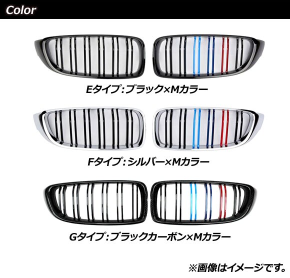 フロントグリルカバー BMW 4シリーズ F32/F33/F36/F82/F83 2013年~2020年 シルバー×Mカラー Fタイプ ABS製 ダブルバー 入数:1セット(2個) AP-FG179-F