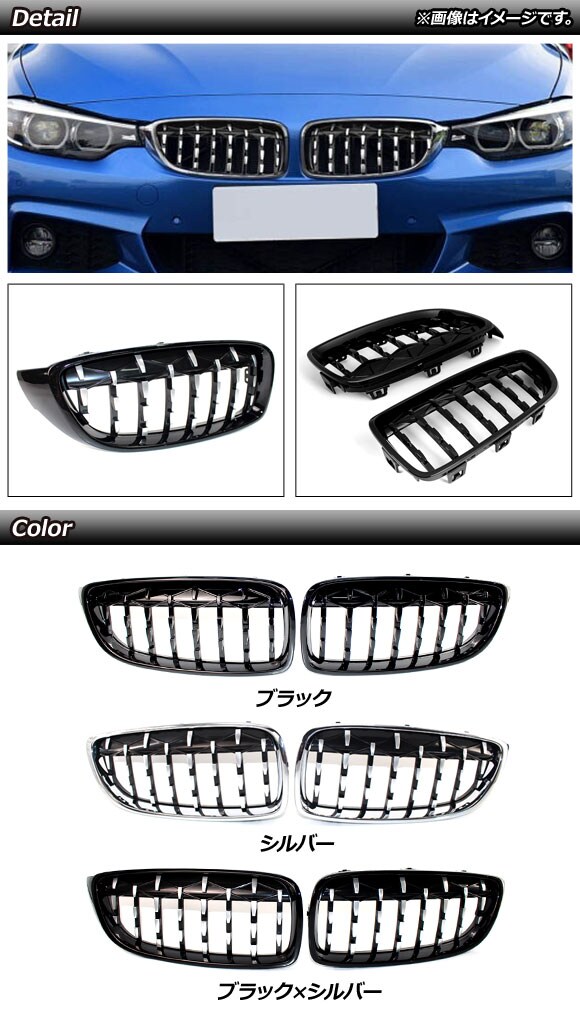 フロントグリルカバー BMW 4シリーズ F32/F33/F36/F82/F83 2013年~2020年 シルバー ABS製 AP-FG323-SI 入数:1セット(2個)
