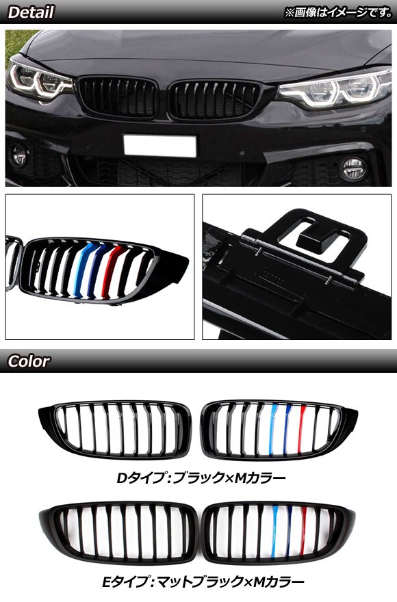 フロントグリルカバー BMW 4シリーズ F32/F33/F36/F82/F83 2013年~2020年 ブラック×Mカラー Dタイプ ABS製 シングルバー 入数:1セット(2個) AP-FG324-D