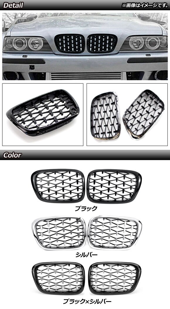 フロントグリルカバー BMW 5シリーズ E39 4ドア車用 1996年~2004年 ブラック ABS製 AP-FG326-BK 入数:1セット(2個)