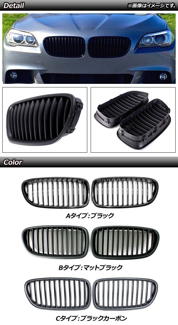 フロントグリルカバー BMW 5シリーズ F10/F11/F18 2010年~2016年 ブラックカーボン Cタイプ ABS製 シングルバー 入数:1セット(2個) AP-FG333-C