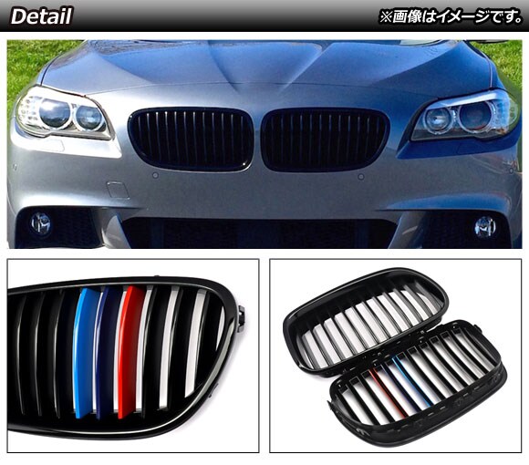 フロントグリルカバー BMW 5シリーズ F10/F11/F18 2010年~2016年 ブラック×Mカラー Dタイプ ABS製 シングルバー 入数:1セット(2個) AP-FG333-D