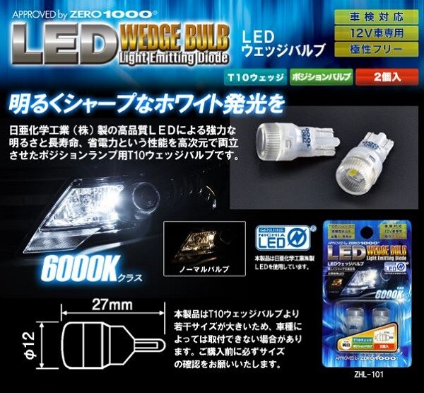 ZERO-1000/零1000 LEDウェッジバルブ T10 ZHL-101 入数:1セット(2個) トヨタ プリウス ZVW50/ZVW51/ZVW55