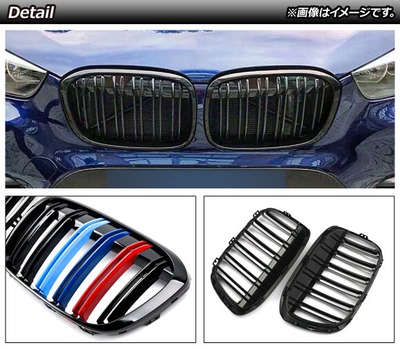 フロントグリルカバー BMW X1 F48/F49 2016年~2019年 ブラック×Mカラー Dタイプ ABS製 ダブルバー 入数:1セット(2個) AP-FG340-D