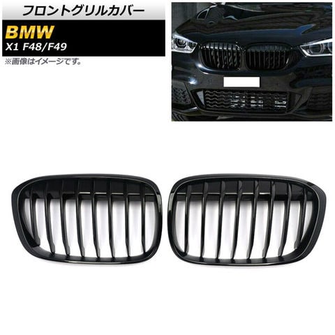 フロントグリルカバー BMW X1 F48/F49 2016年~2019年 ブラック Aタイプ ABS製 シングルバー 入数:1セット(2個) AP-FG341-A