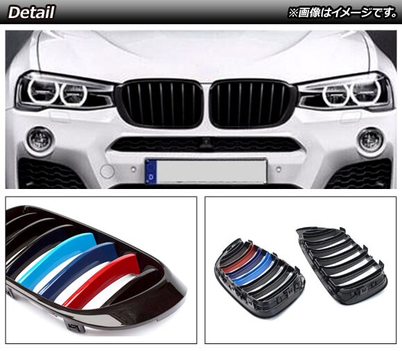 フロントグリルカバー BMW X3/X4 F25/F26 後期 2014年~2017年 ブラック×Mカラー Cタイプ ABS製 シングルバー 入数:1セット(2個) AP-FG347-C