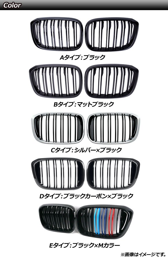 フロントグリルカバー BMW X3/X4 G01/G02 2018年~ ブラックカーボン×ブラック Dタイプ ABS製 ダブルバー 入数:1セット(2個) AP-FG349-D