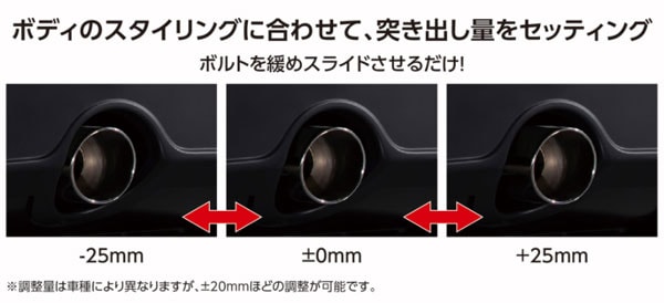 ■テール部分をスライドさせることで、ボディからの突出量を調整可能。エアロパーツの有無やデザインによって、最適なテールポジションを実現