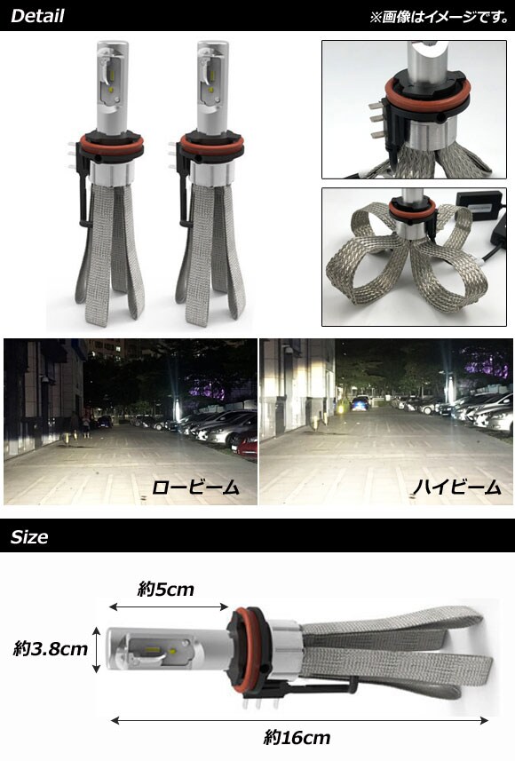 LEDヘッドライト H15 Hi/Lo ヒートリボン式 6000K 8000LM 入数:1セット(左右) AP-LB200
