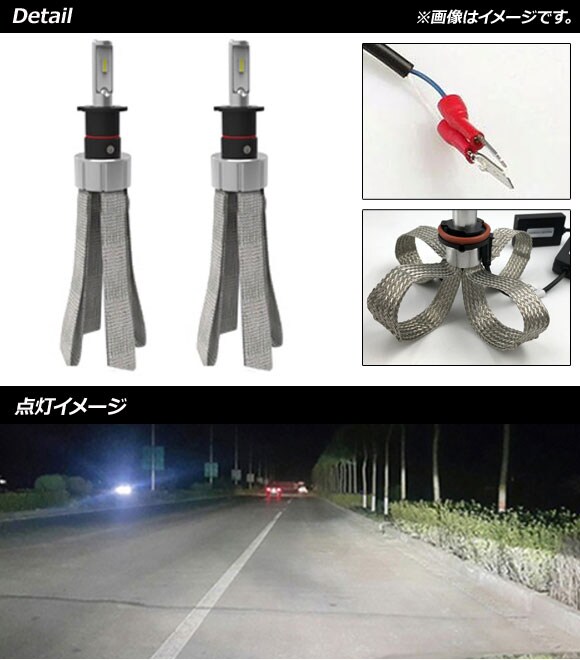 LEDヘッドライト H3 ヒートリボン式 6000K 8000LM 入数:1セット(左右) AP-LB204