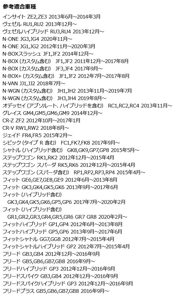 インサイト ヴェゼル N-ONE N-BOX N-VAN N-WGN オデッセイ グレイス CR-Z CR-V ジェイド シビック シャトル ステップワゴン フィット フリード など