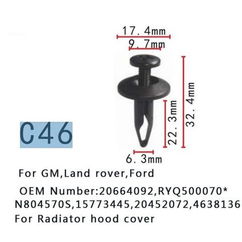 インテリア バックル ピン 適用: GM ランド ローバー ラジエーター フード カバー フォード 20664092 RYQ500070* N804570S 15773445 20452072 4638136 100ピース AL-MM-0614 AL