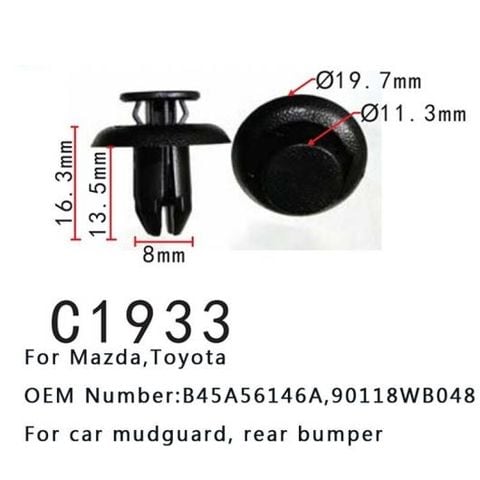 マッドガード クリップ セット リア バンパー ファスナー 適用: マツダ トヨタ 1.5/2.0/2.5L B45A56146A 90118WB048 100ピース AL-MM-0628 AL