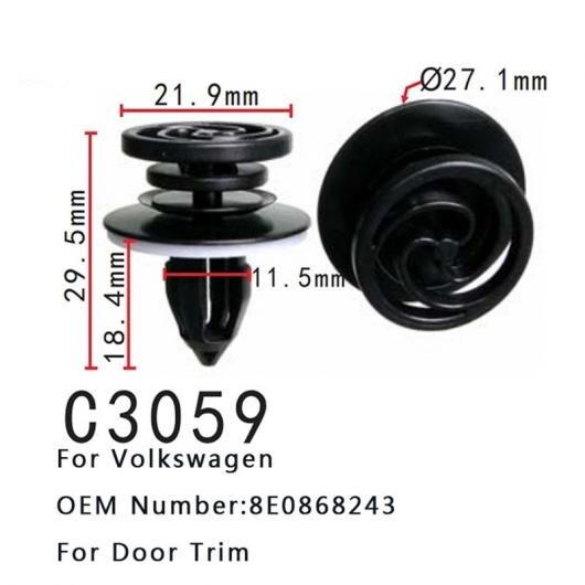 オート クリップ 8E0868243 適用: アウディ/AUDI A3 S3 8P A4 B6 B7 フォルクスワーゲン/VOLKSWAGEN キャディ MK3 シュコダ スペルブ 3T セアト エクシオ ドア トリム バンパー ファスナー 50ピース AL-MM-0688 AL