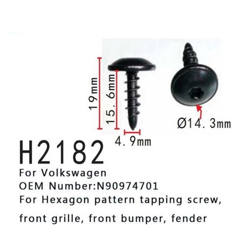 オート スクリュー フロント グリル/バンパー フェンダー N90974701 適用: フォルクスワーゲン/VOLKSWAGEN 六角形 パターン タッピング スクリュー 50ピース AL-MM-0726 AL