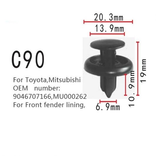 フロント フェンダー 裏地 オート ポジショナー クリップ 9046707166 MU000262 適用: トヨタ 三菱 100ピース AL-MM-0728 AL
