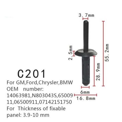 ポジショナー 適用: ファスナー クランプ 厚さ 固定パネル: 3.9-10 mm GM フォード/FORD クライスラー/CHRYSLER BMW 6500911 06500911 07142151750 50ピース AL-MM-0734 AL