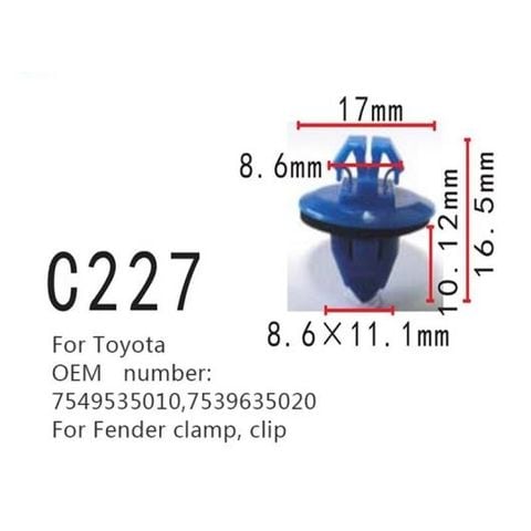 オート クリップ バックル 適用: トヨタ フォーランナー RAV4 ハイランダー FJ クルーザー ETIOS タコマ フェンダー クランプ 7549535010 7539635020 100ピース AL-MM-0736 AL