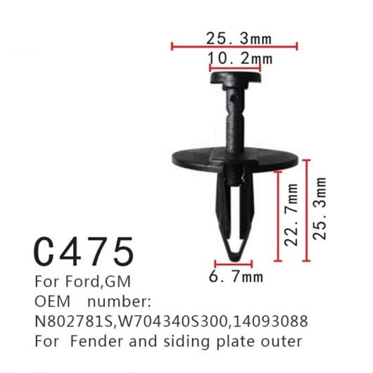 適用: フォード/FORD GM ファスナー フェンダー サイド プレート アウター ウォール クリップ N802781S W704340S300 14093088 50ピース AL-MM-0765 AL