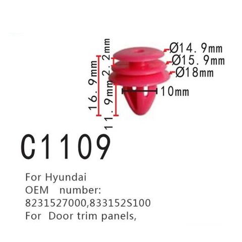 ドア トリム パネル ポジショニング 適用: ヒュンダイ/現代/HYUNDAI アゼーラ エラントラ ソナタ ツーソン カデンツァ ファスナー 8231527000 833152S100 インテリア バックル 100ピース AL-MM-0823 AL