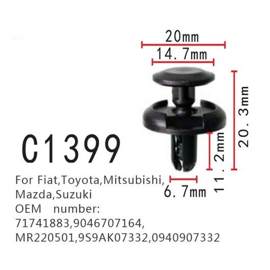 マッドガード フェンダー ファスナー ベーン バックル 適用: フィアット/FIAT トヨタ 三菱 マツダ スズキ 71741883 9046707164 MR220501 9S9AK07332 0940907332 50ピース AL-MM-0845 AL