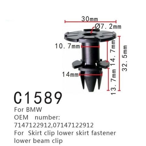 ロワー ビーム クリップ ポジショナー ファスナー 適用: BMW E81 X6 E82 E90 E91 E92 E93 M7147122912 07147122912 スカート クリップ ロワー スカート ファスナー 100ピース AL-MM-0888 AL