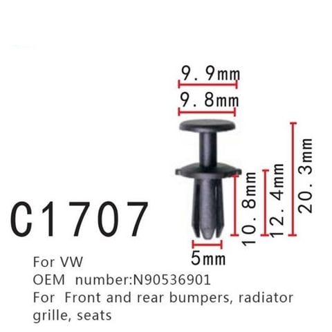 ラジエーター グリル シート ポジショニング ファスナー N90536901 適用: アウディ/AUDI A1 A3 A4 A5 A6 A8 フォルクスワーゲン/VOLKSWAGEN パサート フロント リア バンパー プラグ 100ピース AL-MM-0923 AL