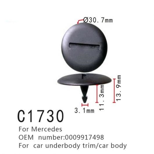 ボディ サイド ロワー インテリア モールディング トリム ポジショナー クリップ 適用: メルセデスベンツ X222 W242 A205 A207 0009917498 アンダーボディ トリム バックル 50ピース AL-MM-0936 AL