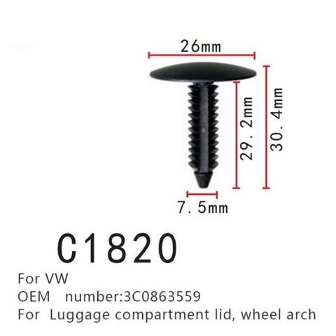 ホイール アーチ ファスナー ポジショナー 適用: フォルクスワーゲン/VOLKSWAGEN ゴルフ パサート ポロ 3C0863559 ポジショニング バックル ラゲッジ コンパートメント メンバー 100ピース AL-MM-0974 AL