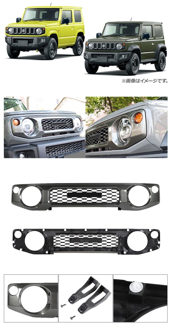 フロントグリルカバー スズキ ジムニー/ジムニーシエラ JB64W/JB74W 2018年07月~ メタリックグレー ABS製 AP-FG362
