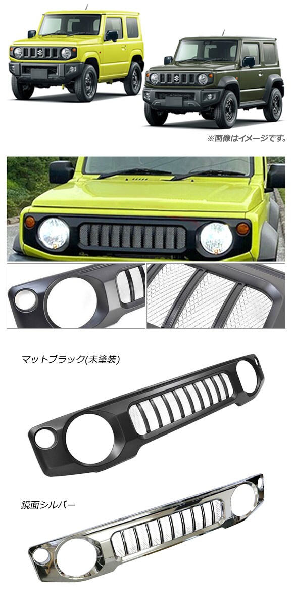フロントグリルカバー スズキ ジムニー/ジムニーシエラ JB64W/JB74W 2018年07月~ 鏡面シルバー ABS製 AP-FG366-KSI