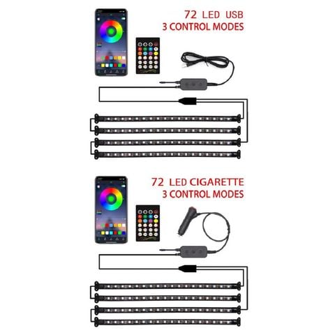 72 LED インテリア ライト 点灯 ストリップ USB APP リモート コントロール ランプ マルチ DIY モード アンダー ダッシュ オート 装飾 ライト USB・シガーソケット AL-MM-2139 AL