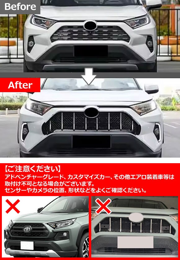 フロントグリルカバー トヨタ RAV4 50系 クリアランスソナー搭載車用 2019年04月~ ブラック×シルバー ABS製 AP-FG372