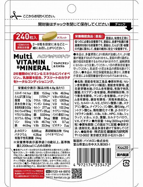 Kentai マルチビタミン&ミネラル 240粒 K4420