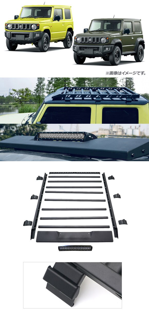 ルーフラック LEDライトバー付き スズキ ジムニー/ジムニーシエラ JB64W/JB74W 2018年07月~ ホワイト アルミ製 組み立て式 AP-XT874-WH