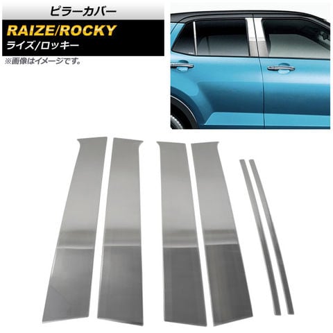 ピラーカバー トヨタ ライズ A200A/A210A サイドバイザー無し車用 2019年11月~ 鏡面シルバー ステンレス製 入数:1セット(6個)