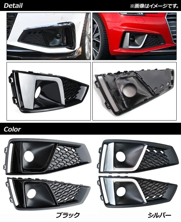 フォグランプカバー アウディ A4 B9 Sライン 2018年~ シルバー ABS樹脂製 入数:1セット(左右)